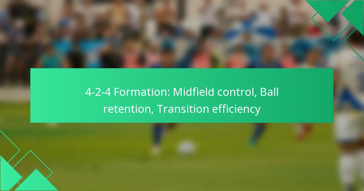 The 4-2-4 formation enhances midfield control by providing a balanced structure that allows for effective ball retention and quick transitions. This setup positions two defensive midfielders to shield the backline while enabling four attackers to maintain offensive pressure, ensuring that possession is maximised and transitions are efficient.
